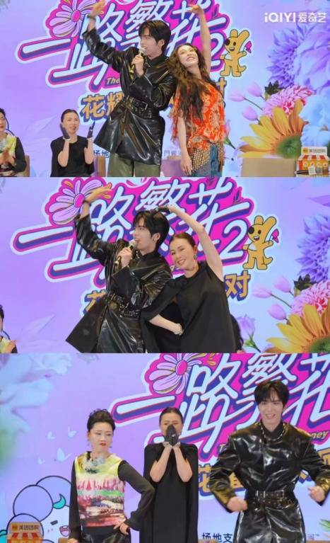 现场繁花团姐弟互动也亲和力拉满,像极了过年回家和自家兄弟姐妹唠嗑现场。柯淳、邵子恒一口一个“嘉玲gege”喊得顺口又自然;邵子恒与刘嘉玲、张柏芝合跳《Marry You》手势舞,姐姐们不仅跳得起劲,眼神里全是“吾家弟弟初长成”的欣慰。更别说全员即兴共创“气血操”,虽然动作不太齐,但每个人都认真出力,又萌又正气!